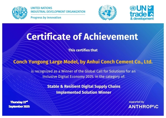 近日,海螺集團(tuán)下屬“安徽海螺水泥股份有限公司——海螺云工大模型”在聯(lián)合國工業(yè)發(fā)展組織等機(jī)構(gòu)于2025年7月發(fā)起...